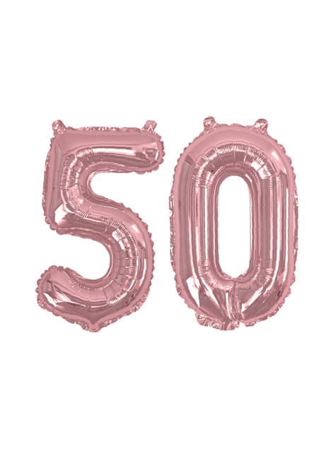 Folieballong "50" i rosegull - Glitz & Glamour Rosa & Rosegull 40cm