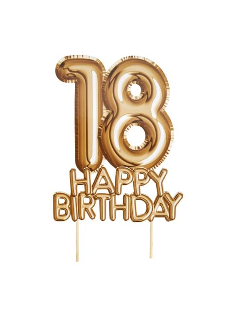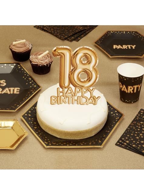 Kakedekorasjon "18 Happy Birthday" i gull - Glitz & Glamour Svart & Gull