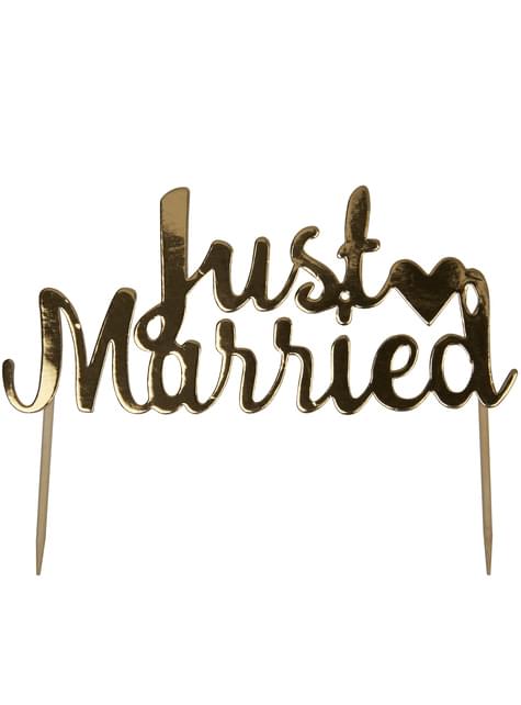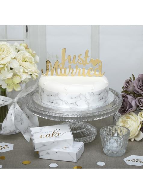 Kakedekorasjon "Just Married" i gull - Scripted Marble