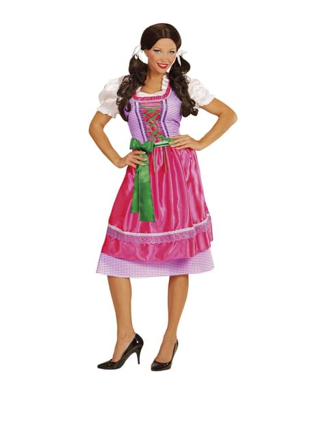 Rosa og Grønn Dirndl Kostyme til Damer
