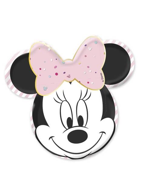 Sett med 4 Minni Mus Ansikt Formete Tallerkener - Minnie Fest Gem