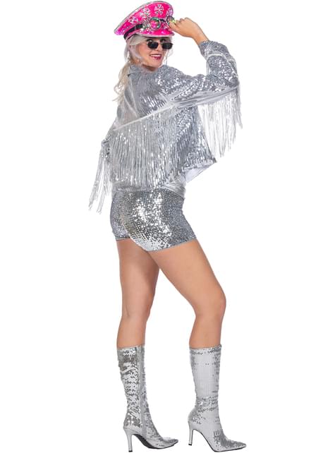 Sølv festivaljakke med frynser til dame